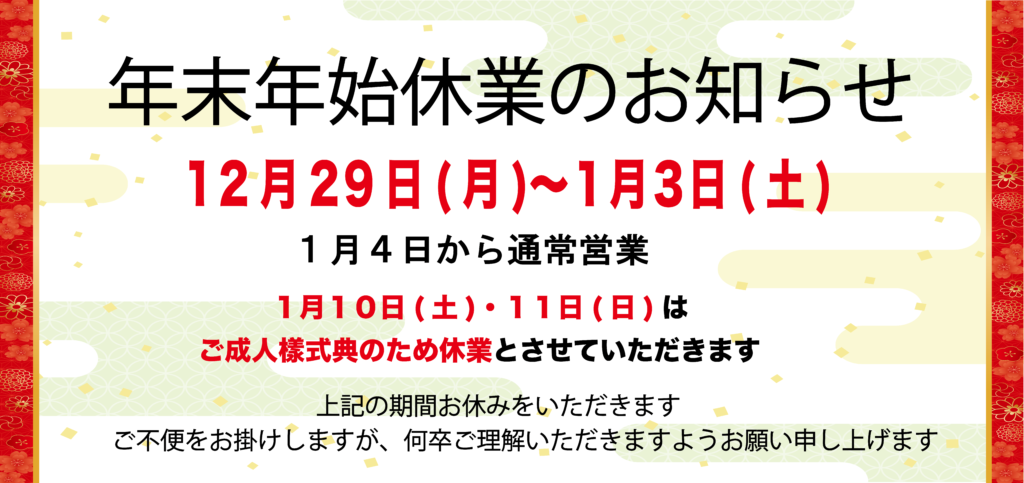 【年末年始の休業のお知らせ】